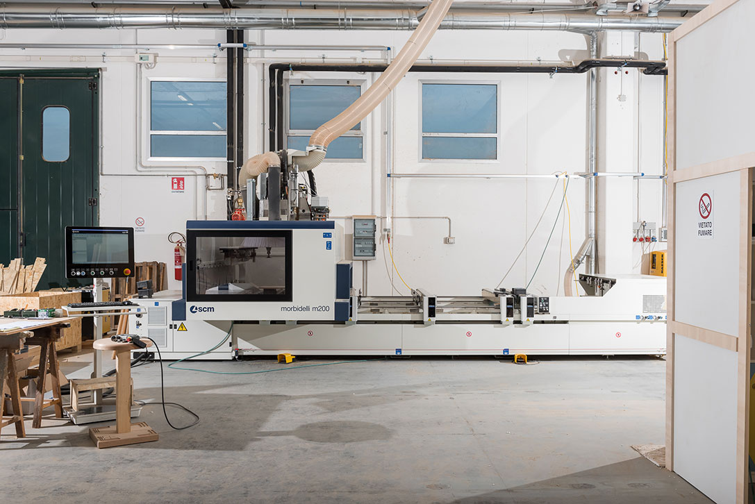 Macchina a controllo numerico 5 assi, progettata per realizzare qualsiasi tipo di lavorazione, fresatura, sagomatura, foratura su legno, pannellature e massello. Garantisce la massima precisione e qualità anche nelle lavorazioni più complesse, offrendo prestazioni elevate e risultati impeccabili.
